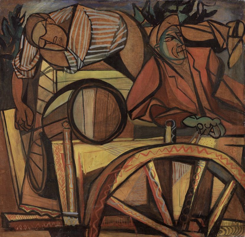 L’opera può essere ricondotta all’ampio ciclo pittorico dedicato alle realtà rurali, redatto con soluzioni pittoriche tipiche di un confronto aperto con la complessa stagione delle Avanguardie Storiche, con l’eredità cezanniana e con lo spirito di “analisi” dei volumi e delle superfici del soggetto reale. Quel mondo “umile”, fatto di gente semplice e di poveri strumenti, viene indagato da Guttuso con la volontà che non è solo quella di una intima e civile partecipazione, di poesia e di denuncia, ma anche da uno spirito di ricerca grammaticopittorica. Il risultato è una chiara stilizzazione e una riduzione analitica dei termini oggettivonaturali, con predominanza di motivi segnicografici che, se da una lato limitano emozioni e reazioni immediate di partecipazione al messaggio sociale, dall’altro esaltano i termini di adesione poetico esistenziale, di intimizzazione della condizione umana. Un’opera importante all’interno del percorso creativo dell’artista, per i suoi diversi contenuti di ricerca e di sensibilità.