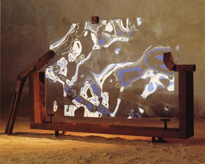 1. I caratteri diversi che sono propri della produzione di questi ultimi dieci anni, con particolare attenzione alle ragioni metodologiche di scelta e alle specifiche soluzioni formali intervenute nella definizione finale dell’opera attraverso l’impiego della lastra di cristallo, anche di notevole ampiezza e spessore, potranno essere correttamente indagati e più specificamente valutati se posti in relazione e confronto con alcune questioni fondanti per la storia della scultura contemporanea. Si dovrà osservare l’impiego del vetro e valutare la specifica soluzione della lastra, il particolare processo di manipolazione e redazione, di fronte alla straordinaria varietà di materiali di supporto e all’aperta evoluzione delle tecniche sulle quali si è costruita, ancora tra la vitalità espressiva dell’antico e la proliferazione del nuovo, la nuova cultura plastica contemporanea.