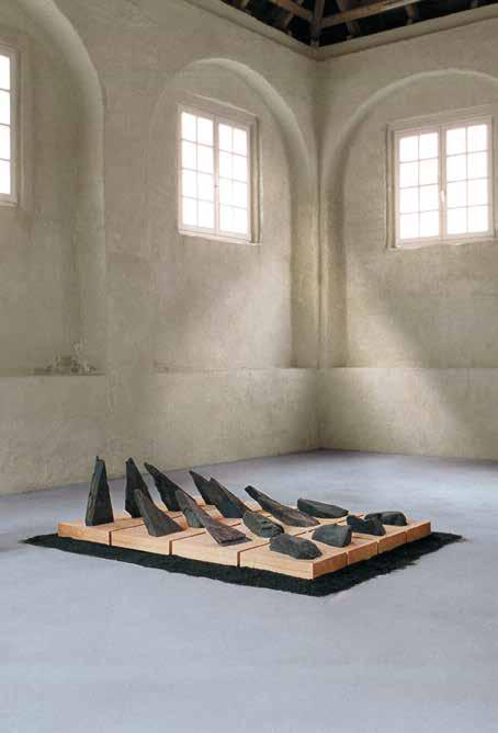 • Besonders zog mich in diesem privaten Rückzugsraum das Vorherrschen von Stein und Holz in den Bann, mit denen der Künstler von Mal zu Mal das Volumen und die Fläche, das Fragment und den Block verbindet und dem stets der Wille zugrunde liegt, das Wesentliche ohne Blendwerk und Abschweifungen, eine absolute, teilweise extreme kompositorische Strenge zu erzielen. In dieser Perspektive ist auch die Auswahl von Ewers Werken im Ausstellungskonzept exemplarisch: Der an den Merkmalen und der plastischen Note der einzelnen Stein- und Holzelemente ablesbare, fast wissenschaftliche