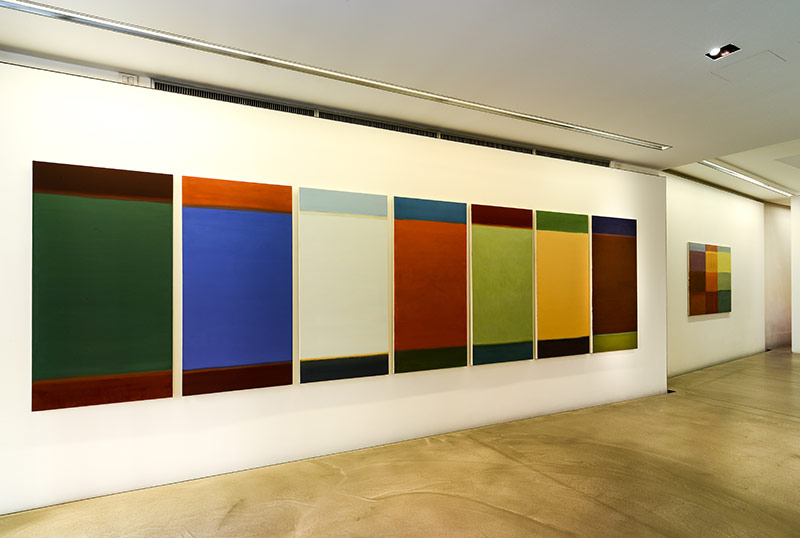 Un nuovo lavoro per un organico ciclo espressivo dal quale viene meno il dato naturalistico di riferimento al soggetto, sostituito nel binomio linguistico da significati simbolici diversi quali estese superfici di brillante giallo, steli in ferro, circolari forme in ottone e rame. Nataly Maier sembra ancora intervenire sulla selezione dei dati e nella sempre più mirata esaltazione dei valori di riferimento al fine di veder accresciute le condizioni d’individuale percezione del soggetto indagato e manipolato; un