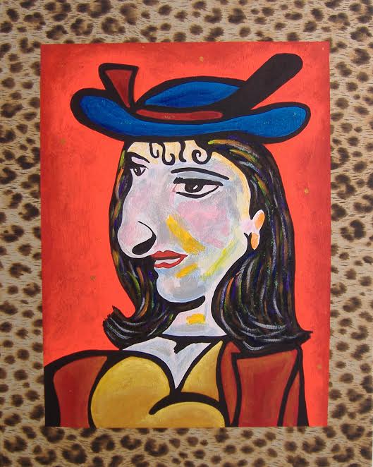 Realizzate per questo specifico evento, le due opere si collocano in un rapporto di continuità con l’intera storia espressiva di Stefano Pizzi; un percorso contrassegnato da articolati cicli tematici in cui l’idea della rivisitazione del patrimonio iconografico ha una significativa centralità. In questo caso il sottotitolo svela una rilettura imperniata sull’ironia e la trasgressione, sul gioco e la volontà di ribaltare certezze consolidate. L’azione del tessuto leopardato quale supporto di appoggio rafforza l’omaggio di Picasso alla forza di personalità, alla carica erotica, al tema del piacere intellettuale che contrassegna il ciclo dedicato a Dora Maar.