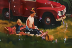L’azione espressiva di Zhaoying, sicuramente caratterizzatasi attraverso l’esperienza direttamente vissuta in Belgio (da confermare?) – Master presso all’Accadémie Royales des Beaux-Arts – che lo deve aver messo in contato con la pittura fiamminga e con il surrealismo di Renè Magritte – citato nel “The Youth’s Yearning for Margarete” -, si muove con un’ampia estensione in cui la dimensione spaziale e temporale si incrociano, coinvolgendo ora la Natura ora l’Architettura, sviluppando una sinergia iconografica tra il paesaggio interno e quello esterno, costantemente sostenuta da una tecnica che in alcuni casi si accende policroma fino a qualificarsi attraverso l’abbondanza del cibo, – “The Faust of M.’Pan” -, mentre in altri persegue un languore monocromo – “Encounter” e “Blue-Blooded Nobility”. Insiste il nostro sguardo sull’insieme e su ogni particolare, scoprendo l’intreccio delle citazioni e sperimentando l’apertura di inedite esperienze culturali ed emozionali, affrontando l’abbondanza delle Nature Morte e nelle grandi tavolate imbandite del sei-settecento, incontrando stati di memoria dalla cultura mitteleuropea accanto a fotogrammi di socialità tipiche degli anni ’50 e ’60, alla trascrizione di quei tanti momenti di familiare serenità e di avventure affettive – “Waver” e “Reading with a Close Frie” -, vissuteall’interno dibrevi e dolci momenti di svago; tracce di quel cinema che sa ancora documentare, memore dell’infinita serie (dalla “Tempesta” di Giorgione del 1508 alla “Fuga in Egitto” di Caravaggio del 1597) e dei tanti ” Déjeuner sur l’herbe”[1].