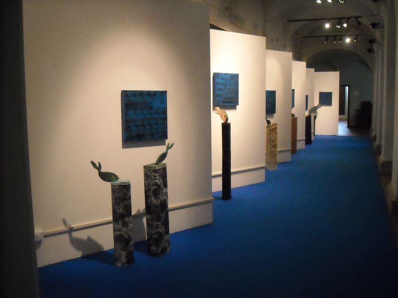 Ai ’pesci in fuga’ dalle acque, non per corrispondenza con un primordiale processo evoluzionistico della specie, ma per disperata condizione di abbandono di ciò che è ormai tossico, Beppe Sabatino porge l’atto pietoso, “dar da bere agli assetati”, rappresentato della fontana. Al percorso dei ’pesci in fuga’ dalle acque, si potrà osservare in questa nuova sede espositiva, un processo parallelo di condivisione attraverso l’atto umano dell’immersione.