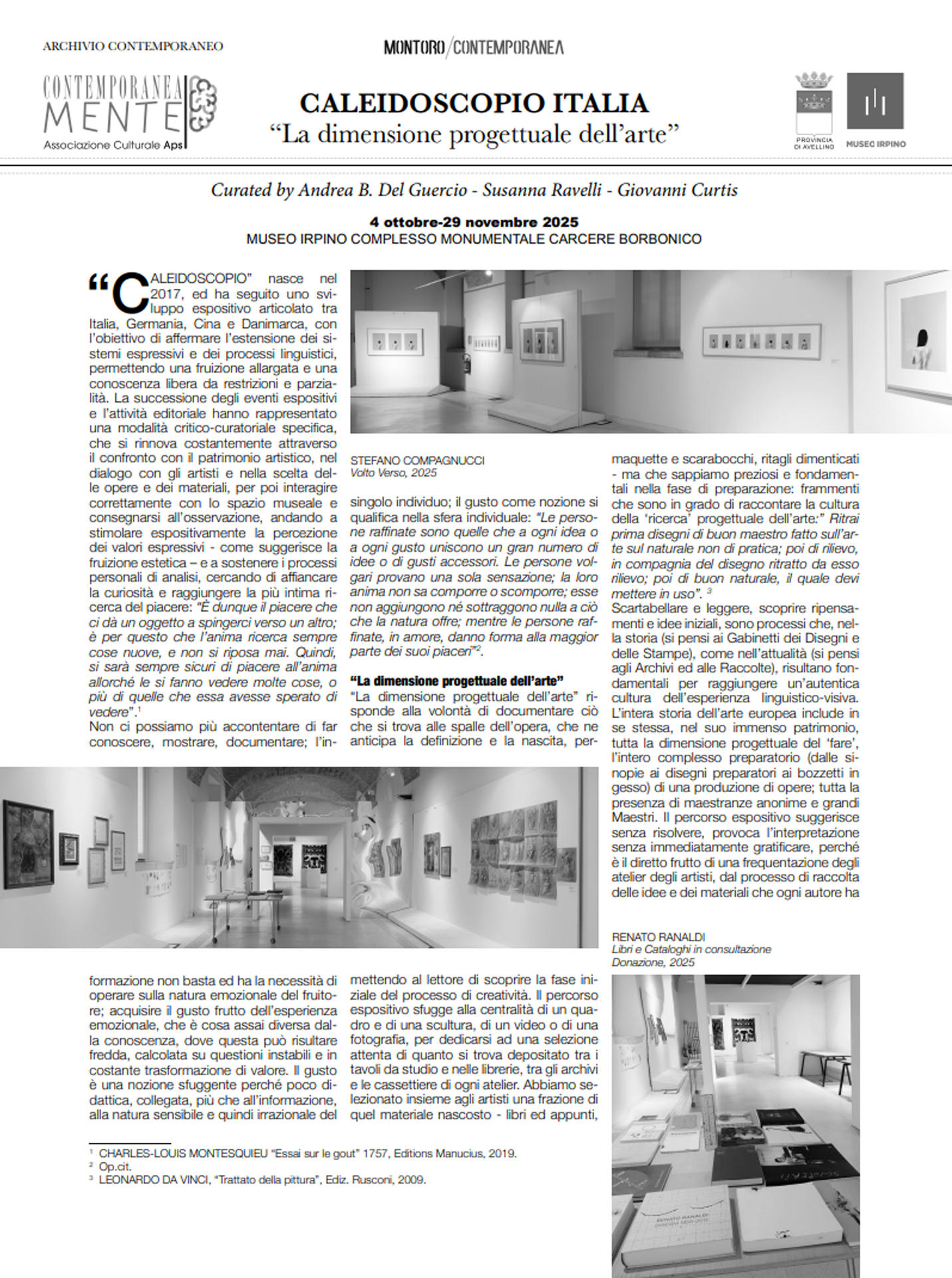 “CALEIDOSCOPIO” was born in 2017 and has followed a structured exhibition development in Italy, Germany, China, and Denmark, with the aim of affirming the breadth of expressive systems and linguistic processes, allowing for a broad enjoyment and a knowledge free from restrictions and bias. The succession of exhibitions and publishing activities have represented a specific critical-curatorial approach, constantly renewed through engagement with the artistic heritage, in dialogue with the artists, and in the selection of works and materials. This approach then interacts appropriately with the museum space and offers itself to observation. Through exhibitions, the perception of expressive values—as aesthetic enjoyment suggests—is stimulated, and personal processes of analysis are supported, seeking to foster