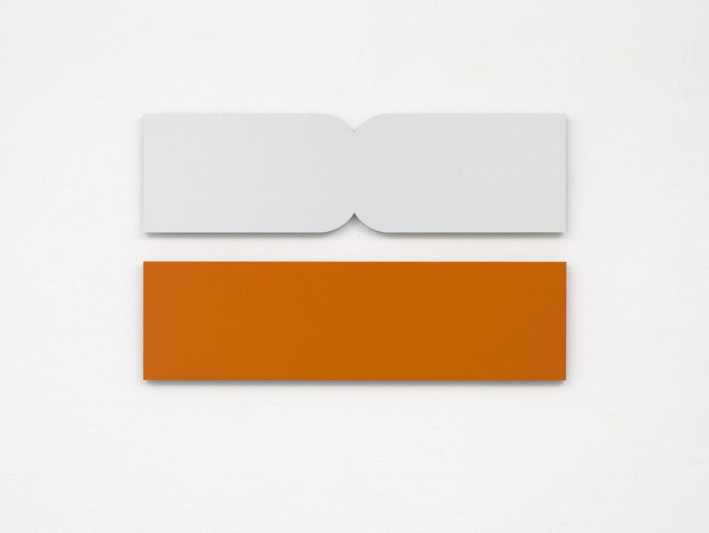 The studio presents technical and laboratory-related aspects that are far from the traditional romantic chaos of painting or from the sculptor expressionist pathos. Yet, what caught my attention were two images taken by the steel plates cutting and aluminium machining laboratories. Photographic documents, capturing the overturning of the work surface areas and the detail related to the water jet, reveal a technological process that influences an aesthetic, analytical culture. Values such as detachment and estimation, the machine’s absolute precision, evidence such as the absence of smears on the materials utilized, all of this becomes part of the artistic work of Cecilia Vissers. The peculiarities of this type of framework create a production of works-sculptures characterized by a visual grammar and a formal vocabulary, which is essential but in constant renewal. The artistic production during the course of these years multiplies variants and solutions thanks to change of the size and the number of factors involved in multiple composition. Also in terms of chromatic choices, the possibilities of creative intervention that Vissers determines seem to be greatly reduced, acting on the perceptual concentration of orange-vermilion, light silver and black. These colours do not detach themselves from the industrial production framework, so that their contribution strengthens the technological entity and the objectivity of communication: all indications that bring us back to the lab-studio structure marked by an extensive presence of light.