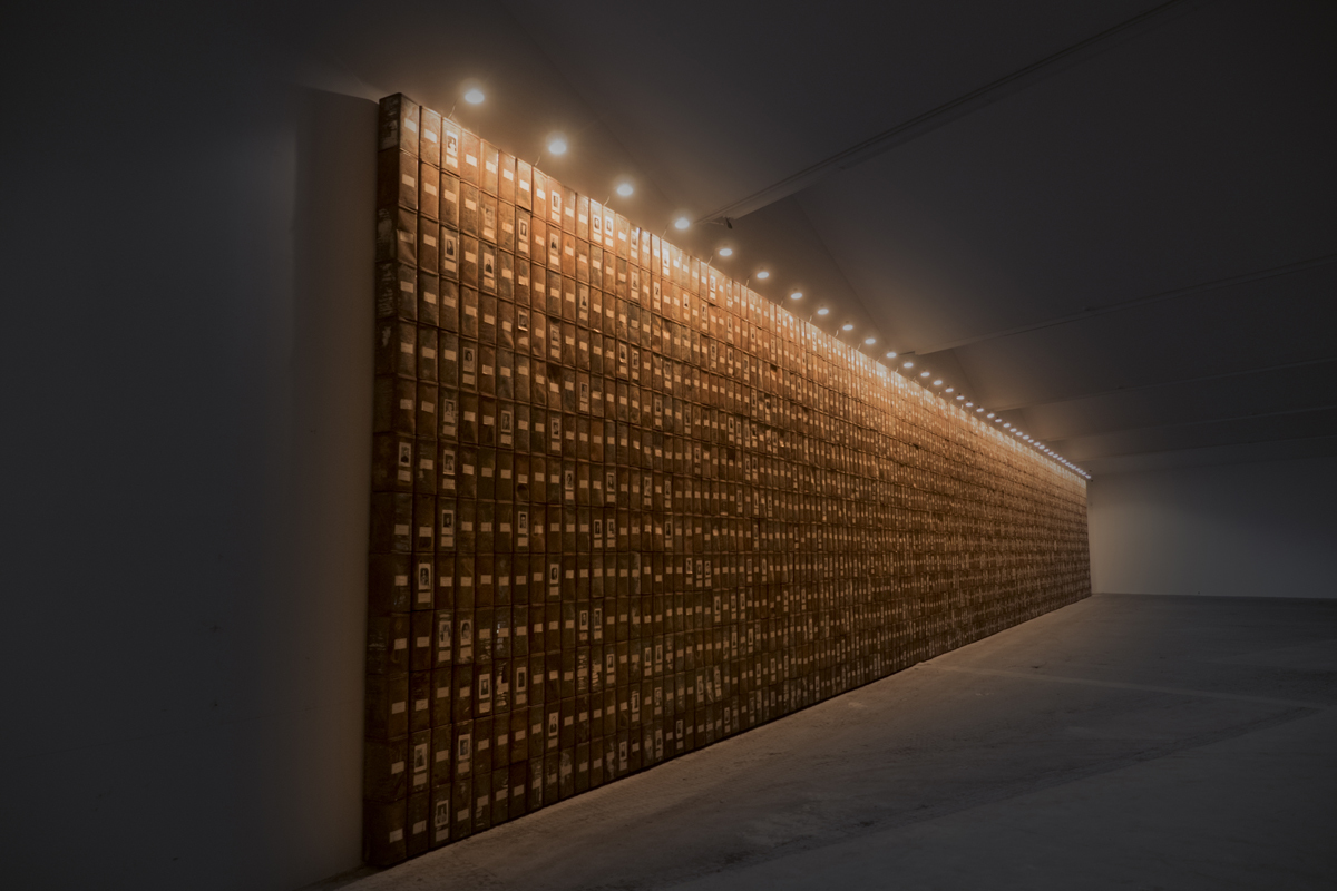 Ogni singolo lavoro, con una diversa variazione di tensione, risponde al confronto tra la memoria e l’oblio, tra la volontà di preservare le tracce di un passaggio, sempre e comunque significativo anche per il solo ‘attore’, e la morte come cancellazione dell’identità; un anonimo ritratto fotografico raccolto e relazionato con altri ritratti fotografici, gli indumenti conservati e degli effetti personali catalogati appaiono il patrimonio tangibile di una memoria che si dilata e si moltiplica ricoprendo come le nobili gallerie dell’antichità le pareti della nostra contemporaneità, che invade organica il nostro habitat fisico e quindi quello mentale del ricordo.