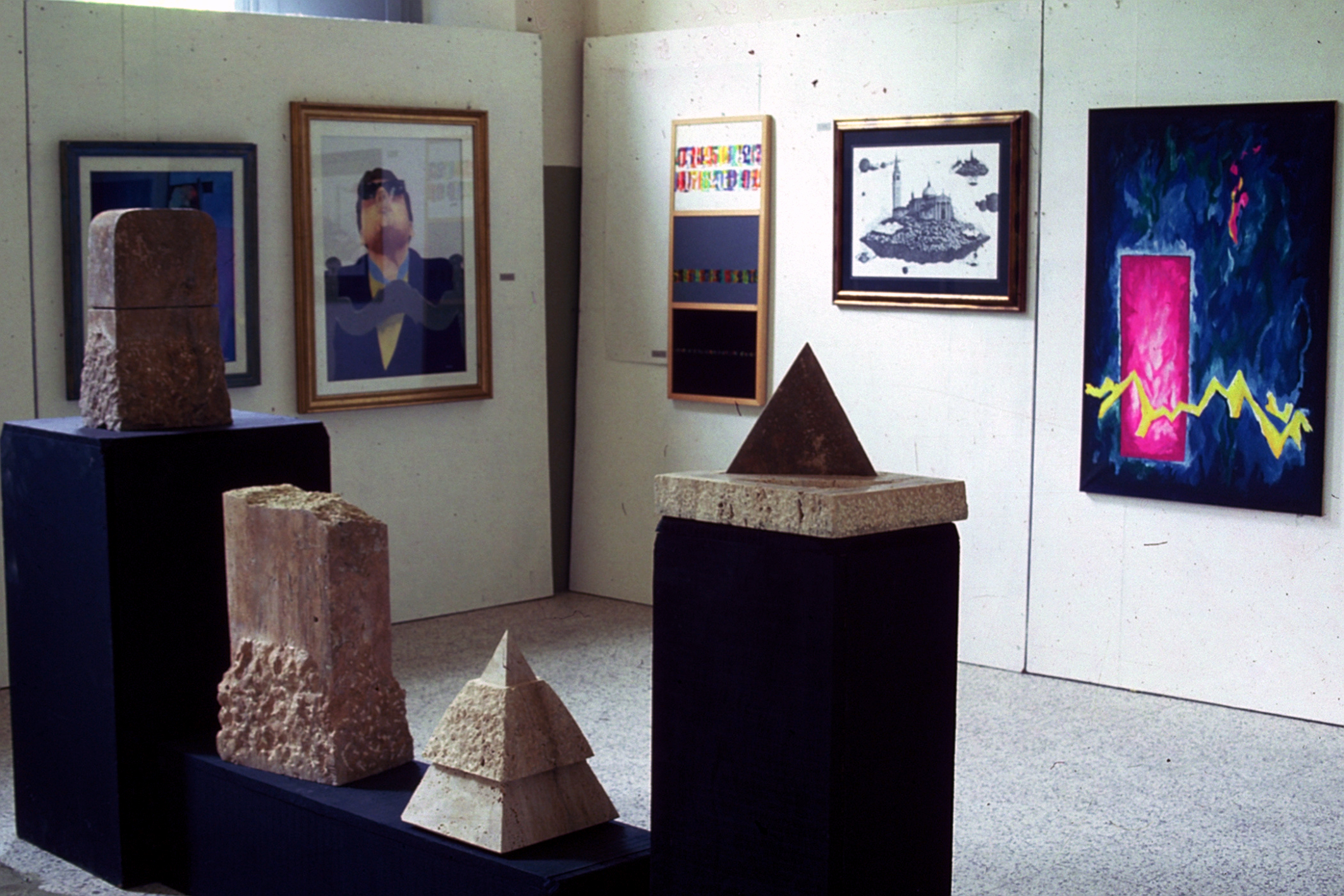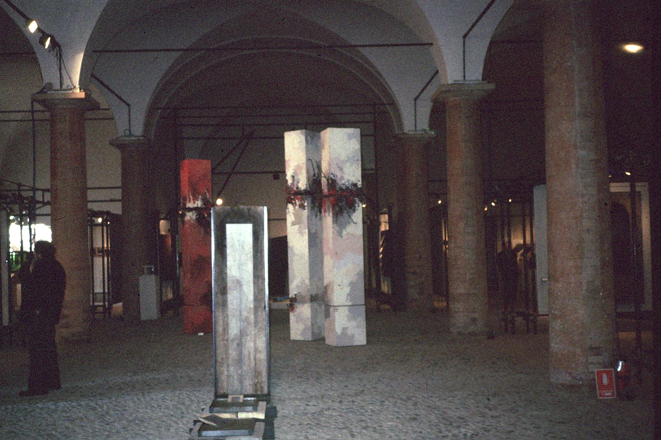 In this section, I have collected a brief selection of images dedicated to exhibition activity between the 1980s and 1990s. They are snapshots of a journey through distant venues, yet whose systematic interaction would develop and consolidate a kaleidoscopic vision of art culture. This vision of democratic communication focused on the breadth of expressive contributions, avoiding the comforts of the “usual suspects,” and drawing on the richness of the iconographic heritage, attentive to connections and interference. From the vibrant presence at international fairs to the invaluable professionalism of the Fondazione Primo Conti Archivio delle Avangardie Storiche in Fiesole, to the Convento dei Serviti di Maria in Monteciccardo (Pesaro Urbino), from the Galleria Comunale in Forte dei Marmi (Lucca), to Palazzo Budini Gattai in Florence, to the Civic Museums of Reggio Emilia.