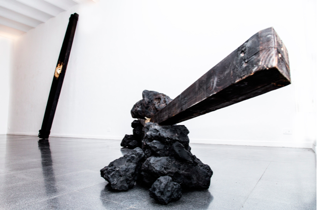 Materia e luce sono le componenti linguistiche su cui Coletta ha lavorato insistentemente anche se in maniera indipendente tra di loro nel passato e che oggi si trovano condotte ad interazione e in unica produzione. La materia intesa grammaticalmente tra linea e superficie, la trave e la lastra, si conferma attraverso la consistenza del legno e del ferro; la luce si configura attraverso la circolarità nel cristallo e nel quarzo, nel volume delle pietre vulcaniche. Il dato che ulteriormente amplifica la ricerca della luce, intesa come espressione spigionata dalla materia, come energia che si visualizza attraverso il contrasto con l’oscurità, che ne orchestra le relazioni e ne amplifica i valori fino a raggiungere l’unità dell’opera è rappresentato dall’azione diretta del fuoco.