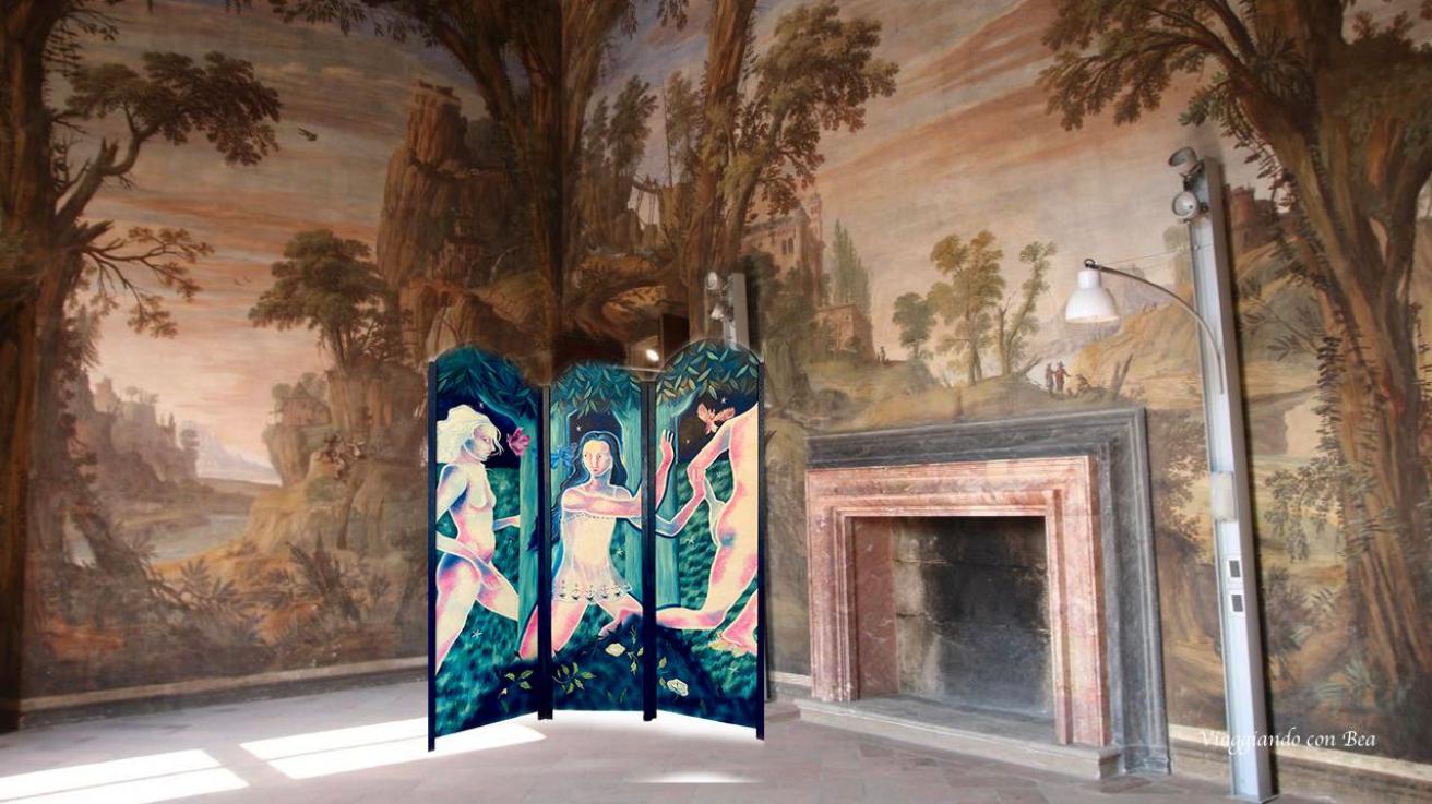 Quando lo sguardo percorre l’immensa cultura pittorica barocca che ha interamente affrescato la successione degli ambienti, andando ad abitare ogni suo spazio disponibile con il più estremo principio di libertà creativa, permettendo al colore di vivere intensamente quel ‘piacere’ che è nella sua più autentica ed irrefrenabile natura, nelle architetture e nel paesaggio, nello sfarzo e nella ricchezza, dove la bellezza, portata sulle ali degli angeli, si dona senza limitazioni – cancellando ogni tragedia di ogni stagione – diventando processo esperienziale della più intima sensibilità estetica.