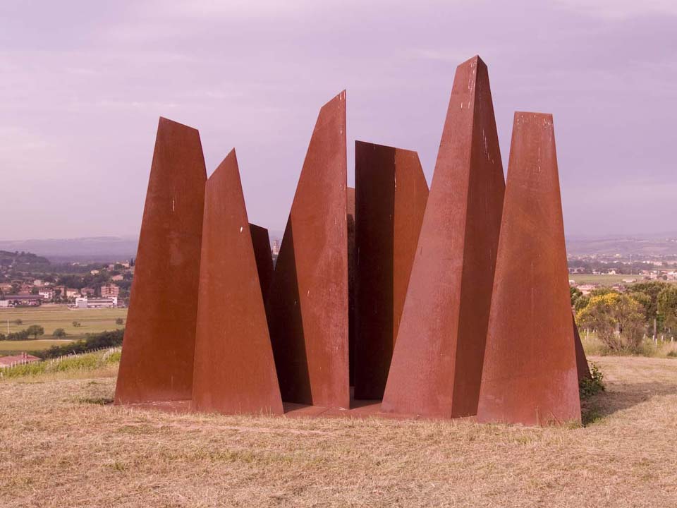 Una tensione sperimentale caratterizzata dal rigoroso abbandono del volume per farsi progetto, indagine at­traverso il disegno dello spazio, lettura e riconoscimen­to di un’area virtualmente plastica; ancora un percor­so severo in riduzione verso la linea con il contributo specifico del tondino d’acciaio, di cui Magnoni con­cettualizza, per una grammatica segnico spaziale, i de­positati e riconosciuti valori di impaginazione e costru­zione; é la produzione redatta nella prima metà degli anni ’70 e da cui dipendono strettamente progetti di grande portata nel confronto attivo con l’architettu­ra, sia in aree esterne, Intervento Scultura del 74 per il Corviale IACP di Roma, sia in contesti interni atti­vamente frequentabili, Spazio Ambiente del 77, Inter­vento 78 a Venezia, Ambiente Scultura del 77 per il K.E.O. Museum di Hagen.