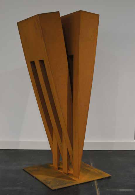 die Schönheit einer Axt und eines Pfluges, der Eisenkeil, der einen Baumstamm spaltet, die ihnen zugrunde liegende Funktionalität: In abstrahierter Form tauchen sie in den Werken des Künstlers wieder auf. Schon vor dem Wohnhaus, das direkt mit dem Atelier und der Werkstatt verbunden ist, begegnet man monolithischen Skulpturen, Zeugen der lokalen Kultur; monumentale Arbeiten, die imstande sind, mithilfe der warmen Farbe des Eisens und des Rosts mit den unendlichen Tannenwäldern in einen Dialog zu treten. Aber erst wenn man die Werkstätte betritt und ins Atelier hinaufgeht, wo die ersten Zeichnungen und Pläne entstehen, bekommt man einen Eindruck davon, wie sehr Werkzeug und Kunstwerk übereinstimmen. Hier befindet sich eine faszinierende Reihenfolge von voneinander unabhängigen Skulpturen, die jedoch einem System zugehörig sind, bei dem Form und Funktion in einem Zusammenhang stehen und interagieren. Die Strenge dieser Objekte ist außerordentlich, ihre Kraft liegt nicht nur in ihrer Struktur, sondern auch in der Dimension des Schweigens, die sie